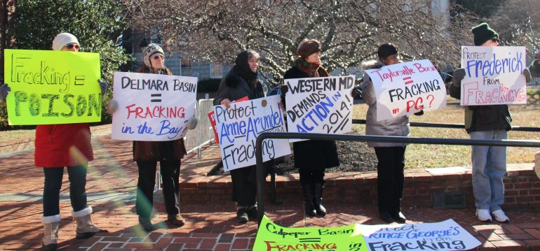ANNAPOLIS – A coalition of protesters stuffed papers into passing legislators’ hands calling for an extension of a statewide fracking moratorium as the General Assembly began its opening day Wednesday.
