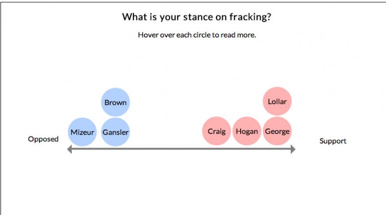 The Republican candidates showed more confidence in allowing hydraulic fracturing, or fracking, for natural gas in Maryland.