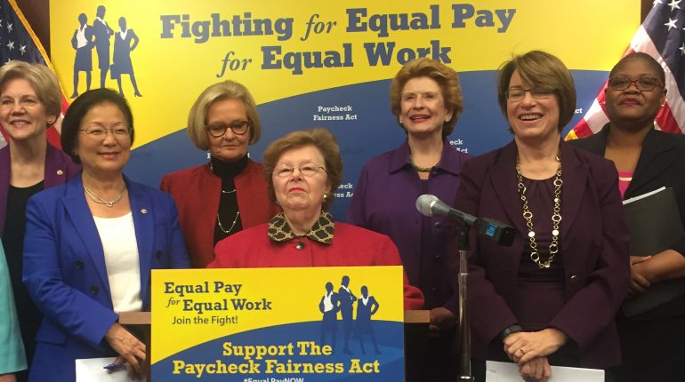 “We want equal pay in our law books and equal pay in our checkbooks, and to finally get rid of the harassment that women face in the marketplace when they even ask about how much pay they make,” Mikulski said.