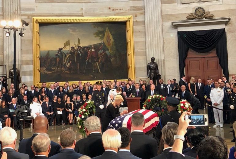 WASHINGTON – John McCain, “a drum major for courage, truth and justice,” was honored by family, friends and colleagues Friday in a United States Capitol Rotunda service.