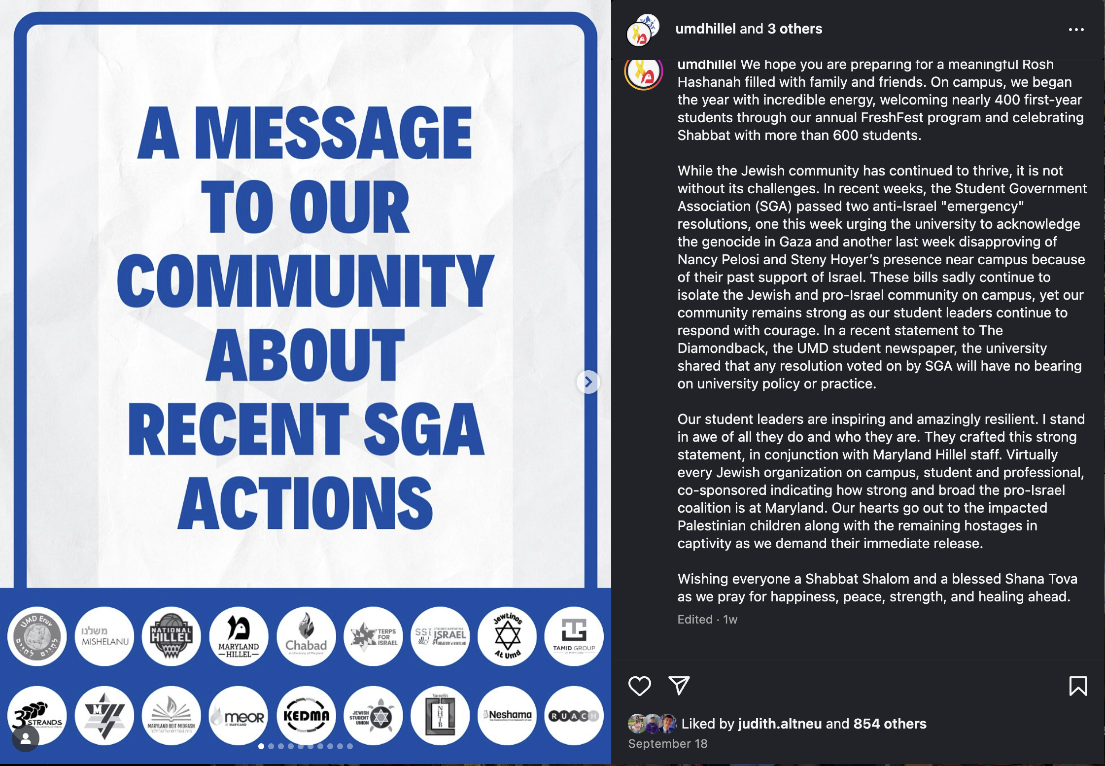 The University of Maryland’s Student Government Association passed a resolution calling on the school to divest from companies tied to Israel’s military actions. Jewish student groups say the timing of the vote on Yom Kippur and the content of the bill leave their community feeling isolated. This bill has intensified cultural divides within SGA.