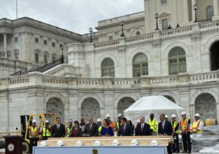 The nail-driving ceremony marked the beginning of construction for the new inauguration platform at the United States Capitol.