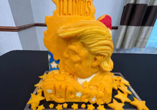 MILWAUKEE — Attendees of the Republican National Convention are becoming more creative by the day, finding new ways to pay homage to their nominee. The Illinois delegation breakfast today offered a bust of the former president carved out of a…