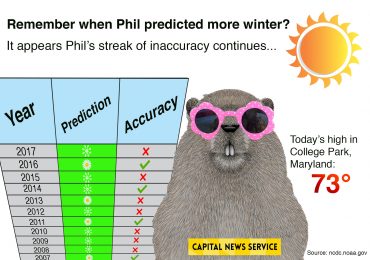 Punxsutawney Phil’s streak of inaccurate predictions seems to continue as today’s 73 degree high in College Park leans more toward spring than winter.